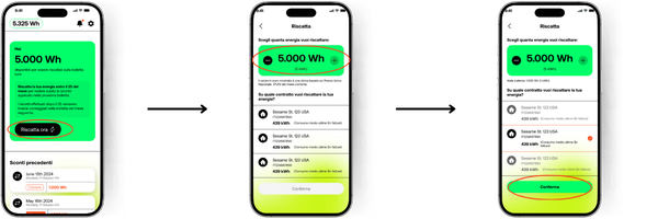 Apri l’app → Riscatta → scegli i Wh → scegli il POD dove vuoi riscattare i Wh → conferma.